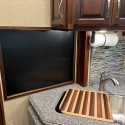 We recently purchased a 2017 Fleetwood. In the kitchen there is a framed, black space. It is not magnetic and it is not a chalkboard. Behind it is a "...