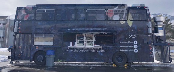 A double-decker bus from Bristol has a second life as a two-story dining room on wheels serving pub grub and music by The Beatles.