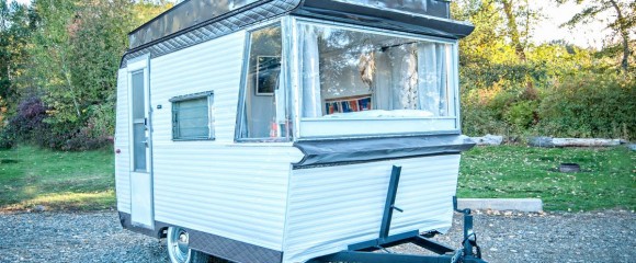 Get a look inside this remodeled 1963 Field & Stream camper. It has a gorgeous new interior with a queen bed and a shower.