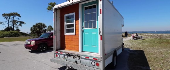 Take a look inside this converted U-Haul truck. The owner built out the old moving truck as a tiny home-on-wheels with a budget of only $9,000!