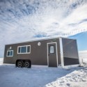 On frozen lakes in the northern midwest, you’ll often see a collection of campers inhabited by ice anglers in some of the best fish house RVs.